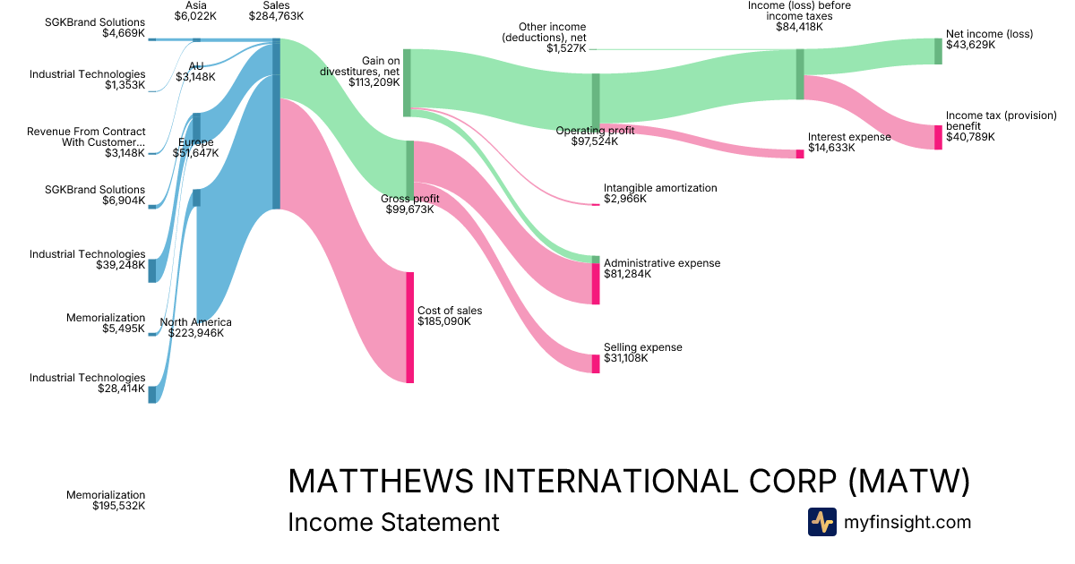 For the quarter ending 2025-12-31, MATW made $284,763K in revenue. $43,629K in net income. Net profit margin of 15.32%.