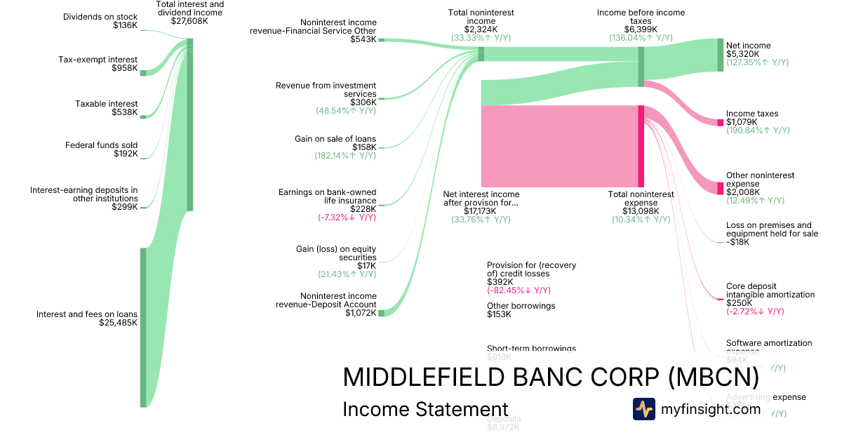 For the quarter ending 2025-09-30, MBCN made $53,037K in revenue. $5,320K in net income. Net profit margin of 10.03%.