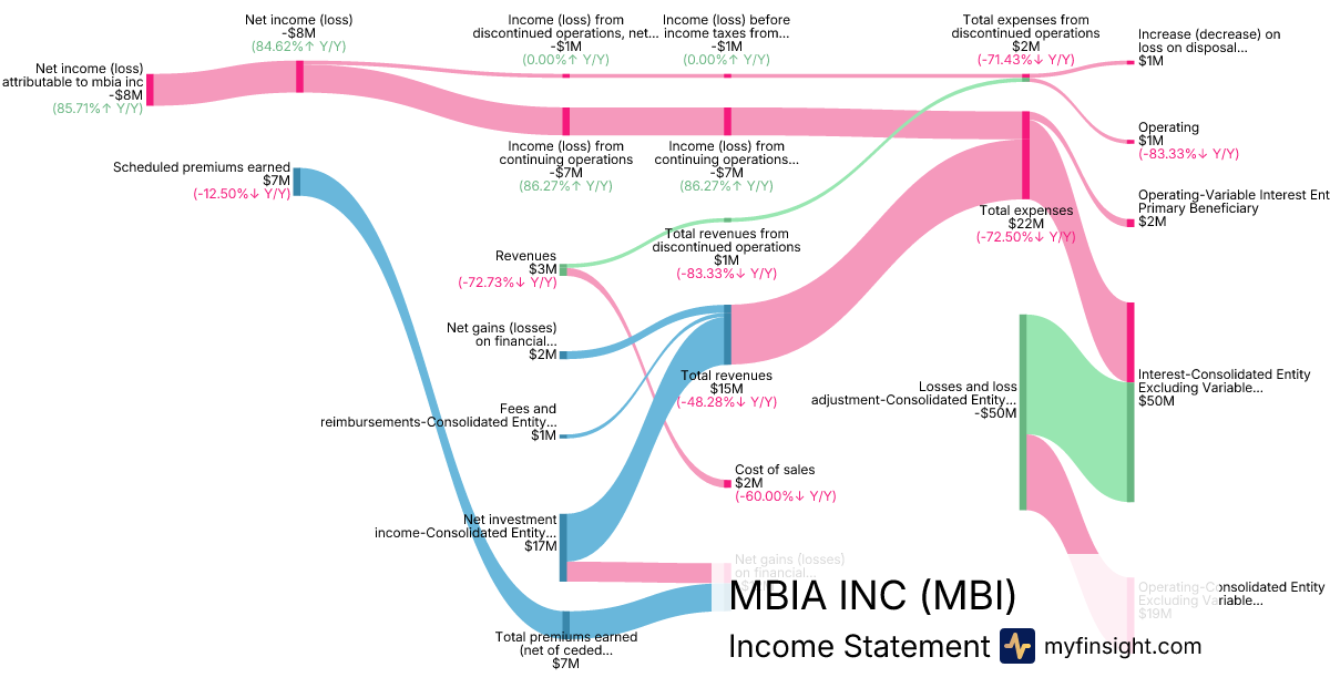 For the quarter ending 2025-09-30, MBI made $15M in revenue. -$8M in net income. Net profit margin of -53.33%.
