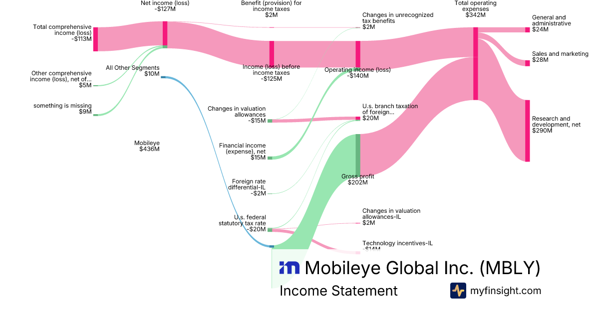 For the year ending 2025-12-27, MBLY made $1,894M in revenue. -$377M in net income. Net profit margin of -19.90%.