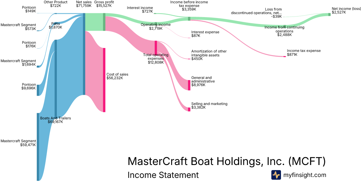 For the quarter ending 2025-12-28, MCFT made $71,759K in revenue. $2,527K in net income. Net profit margin of 3.52%.
