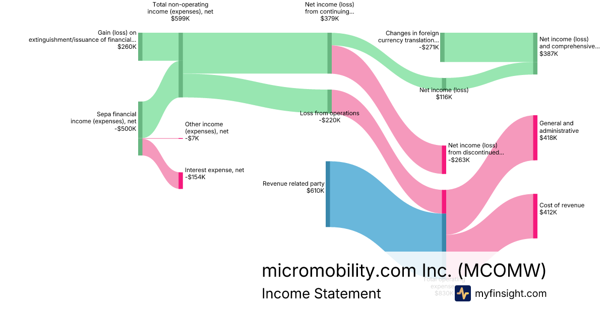 For the quarter ending 2025-09-30, MCOMW made $929K in revenue. $387K in net income. Net profit margin of 41.66%.