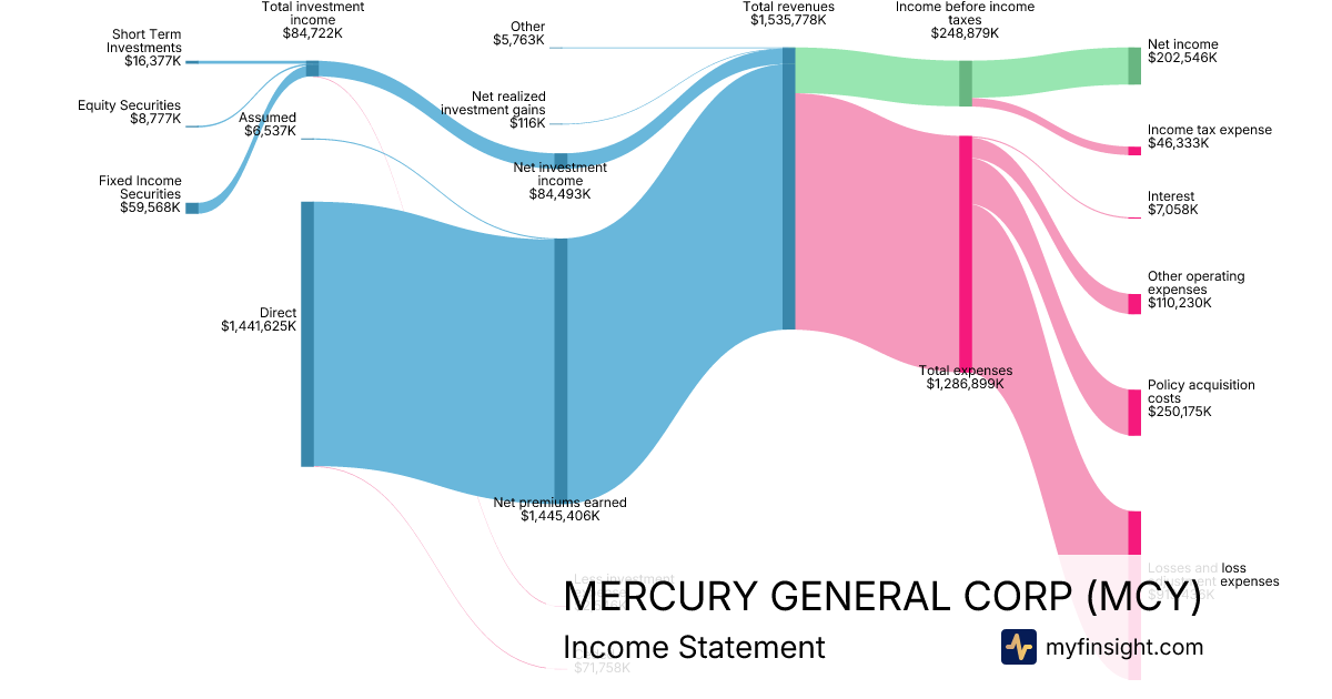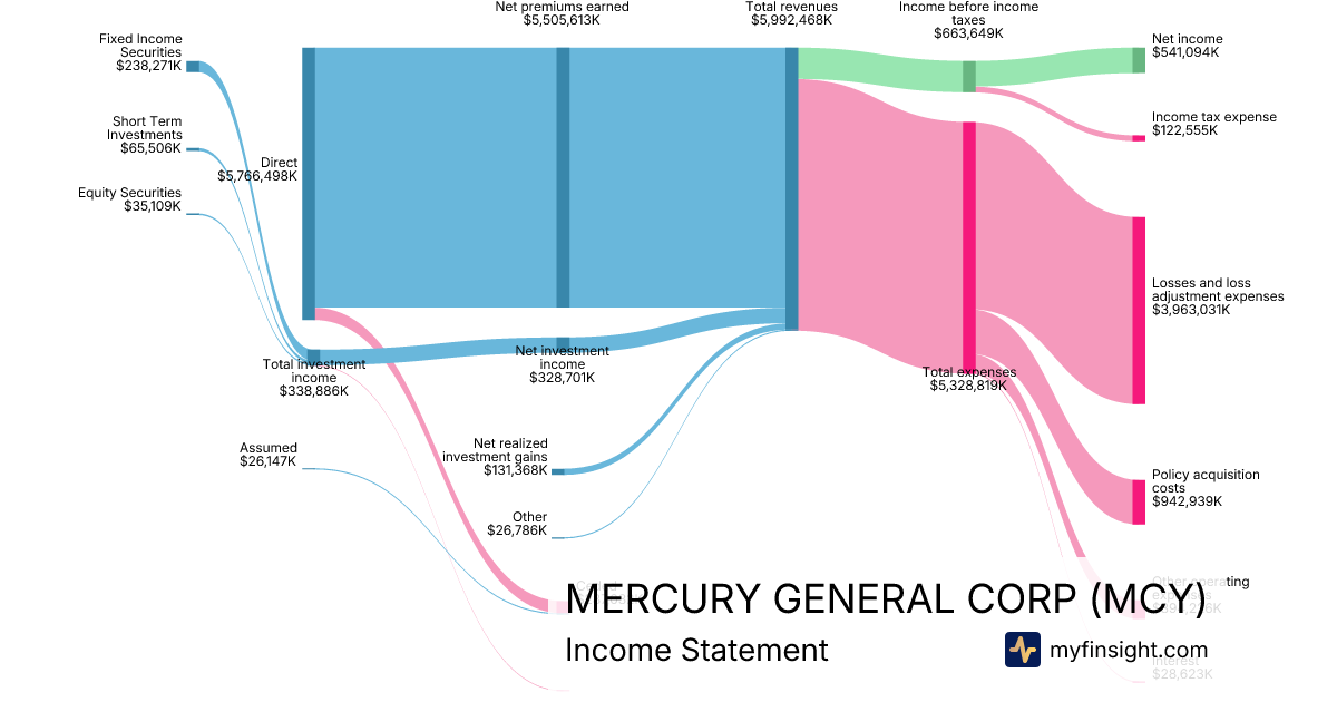 For the year ending 2025-12-31, MCY made $5,992,468K in revenue. $541,094K in net income. Net profit margin of 9.03%.