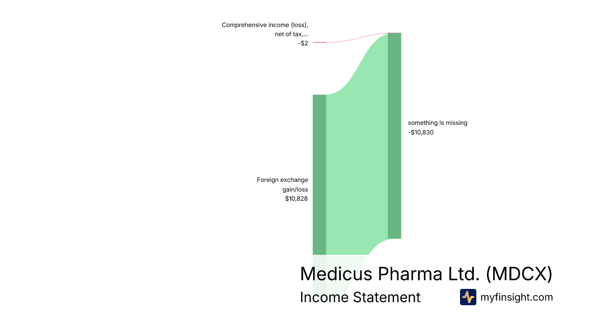 For the quarter ending 2025-09-30, MDCX made $10,828 in revenue. -$2 in net income. Net profit margin of -0.02%.