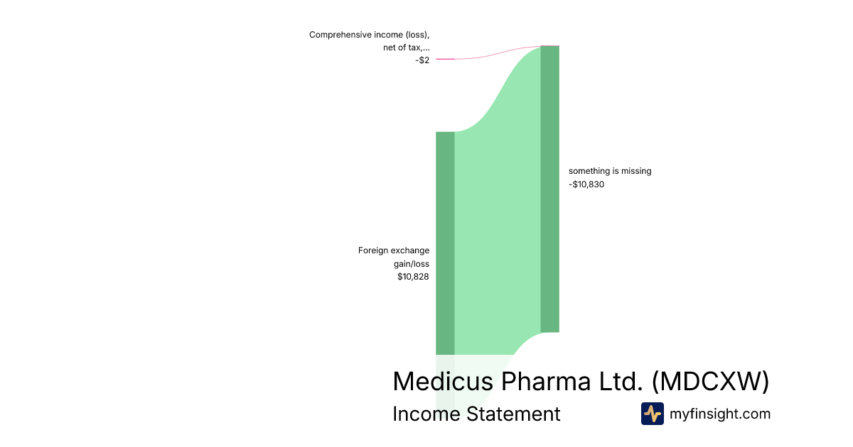 For the quarter ending 2025-09-30, MDCXW made $10,828 in revenue. -$2 in net income. Net profit margin of -0.02%.