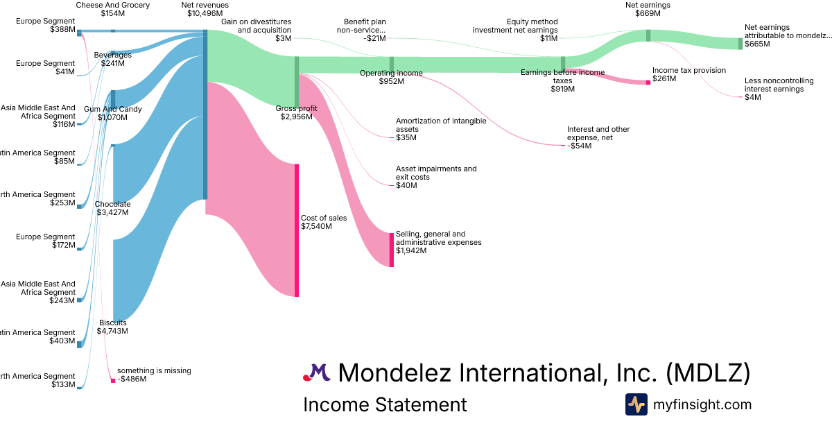 For the year ending 2025-12-31, MDLZ made $38,537M in revenue. $2,451M in net income. Net profit margin of 6.36%.