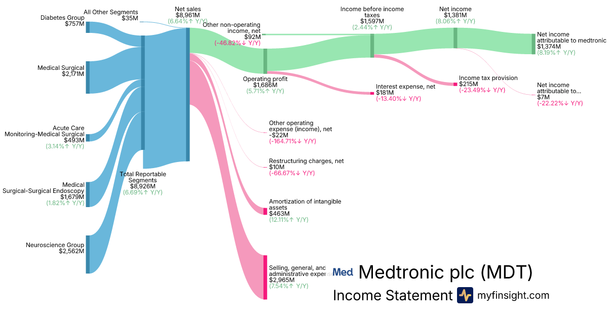 | Net income attributable to medtronic | 1,374 | 1,040 | 1,294 | 1,270 |