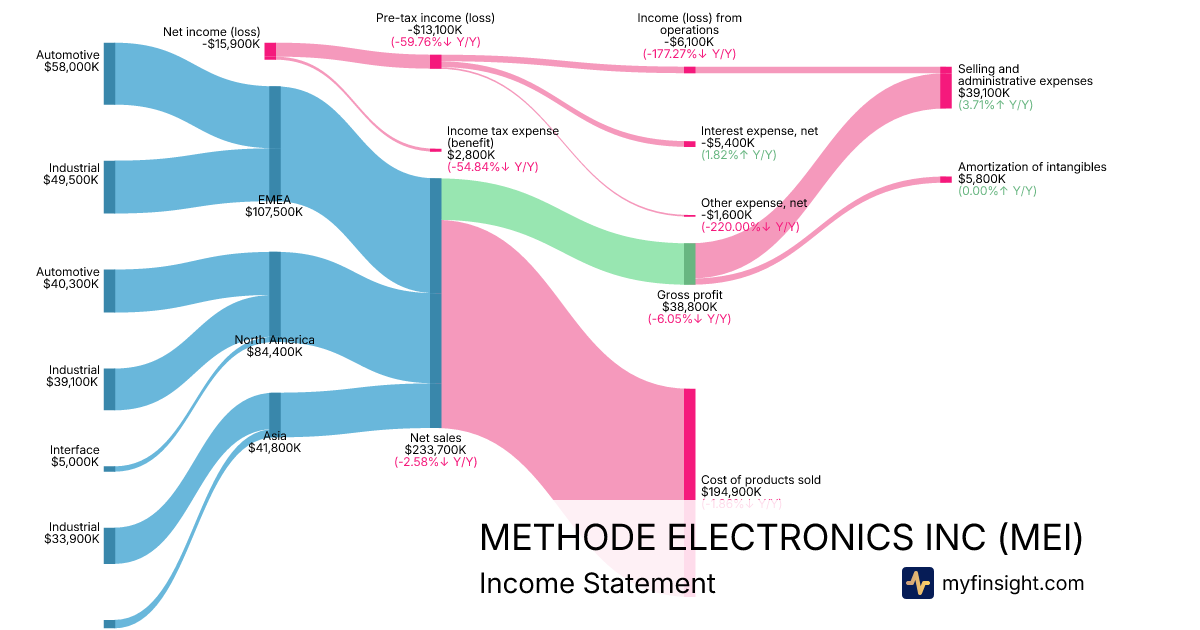For the quarter ending 2026-01-31, MEI made $233,700K in revenue. -$15,900K in net income. Net profit margin of -6.80%.
