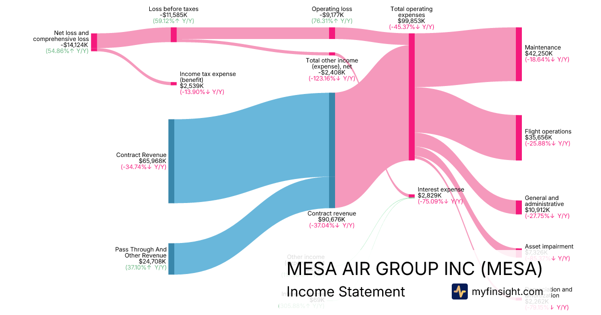 For the quarter ending 2025-09-30, MESA made $90,676K in revenue. -$14,124K in net income. Net profit margin of -15.58%.