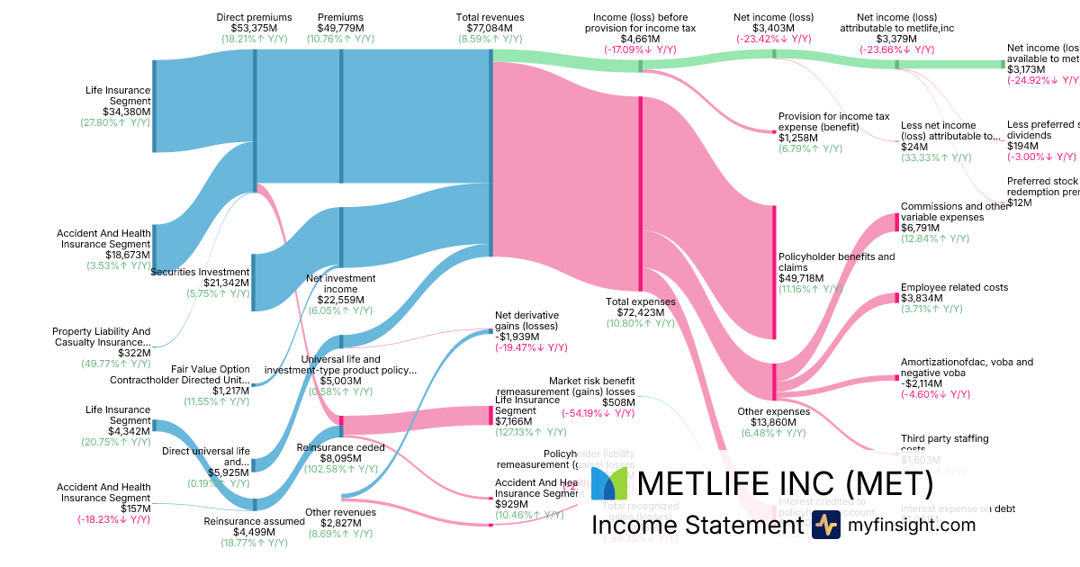 For the year ending 2025-12-31, MET made $77,084M in revenue. $3,173M in net income. Net profit margin of 4.12%.