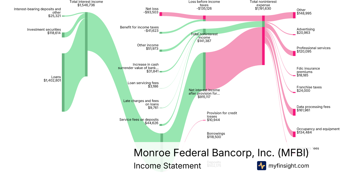 For the quarter ending 2025-09-30, MFBI made $3,458,805 in revenue. -$93,503 in net income. Net profit margin of -2.70%.