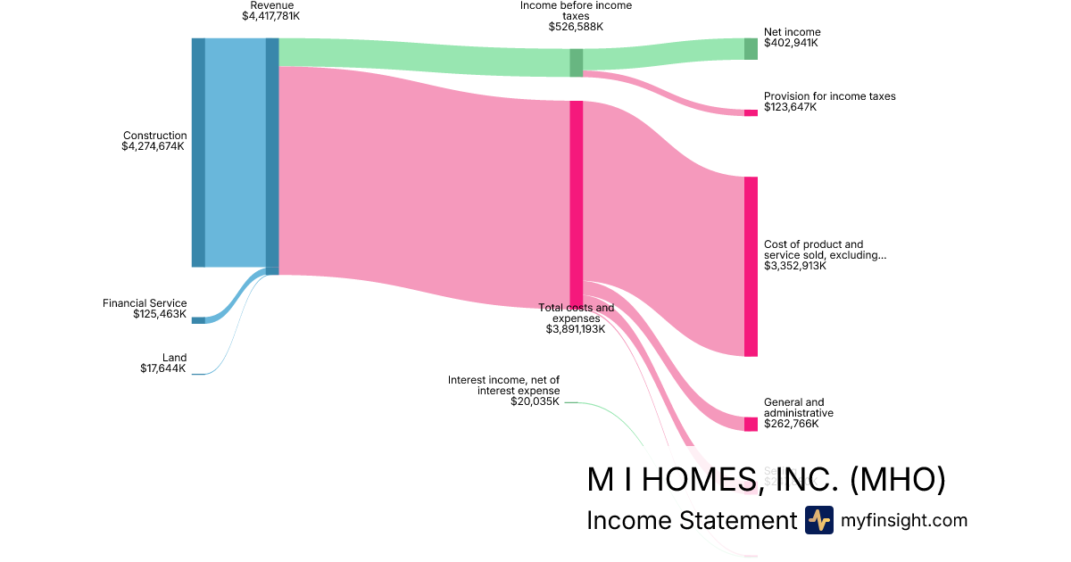 For the year ending 2025-12-31, MHO made $4,417,781K in revenue. $402,941K in net income. Net profit margin of 9.12%.
