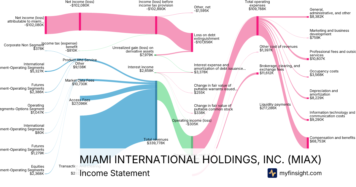 For the quarter ending 2025-09-30, MIAX made $339,778K in revenue. -$102,080K in net income. Net profit margin of -30.04%.