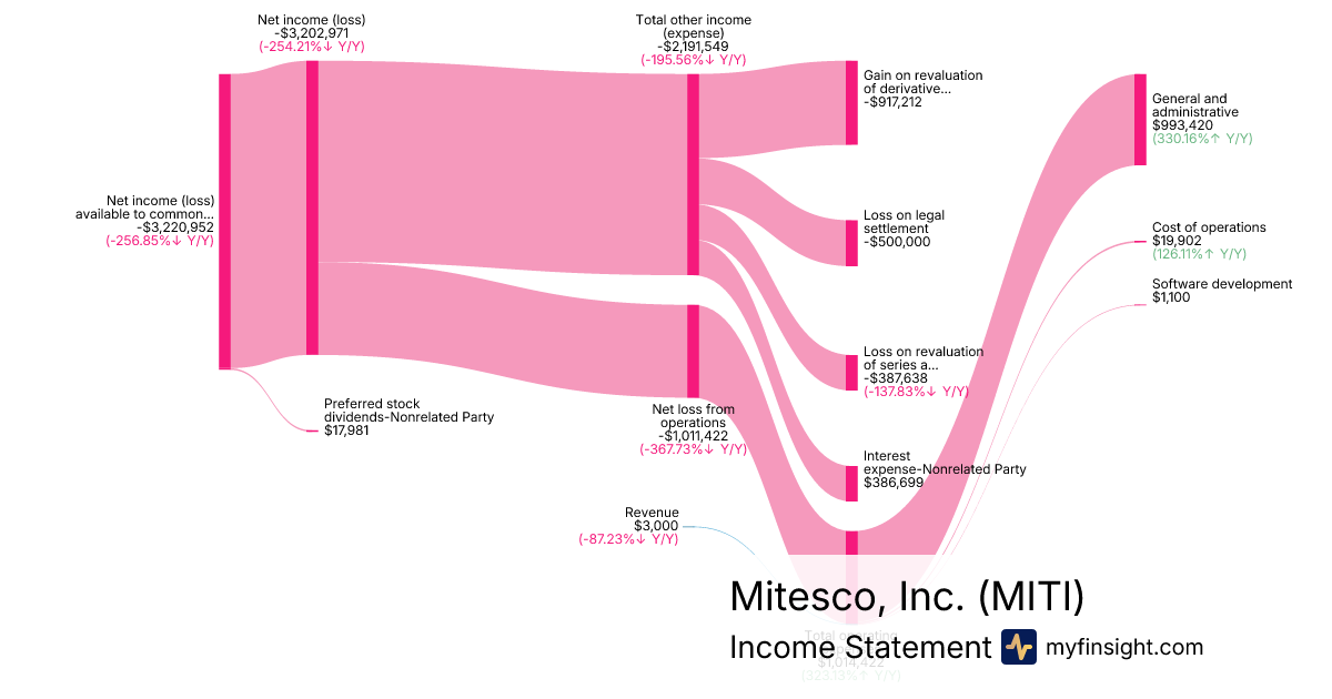 For the quarter ending 2025-09-30, MITI made $3,000 in revenue. -$3,220,952 in net income. Net profit margin of -107365.07%.