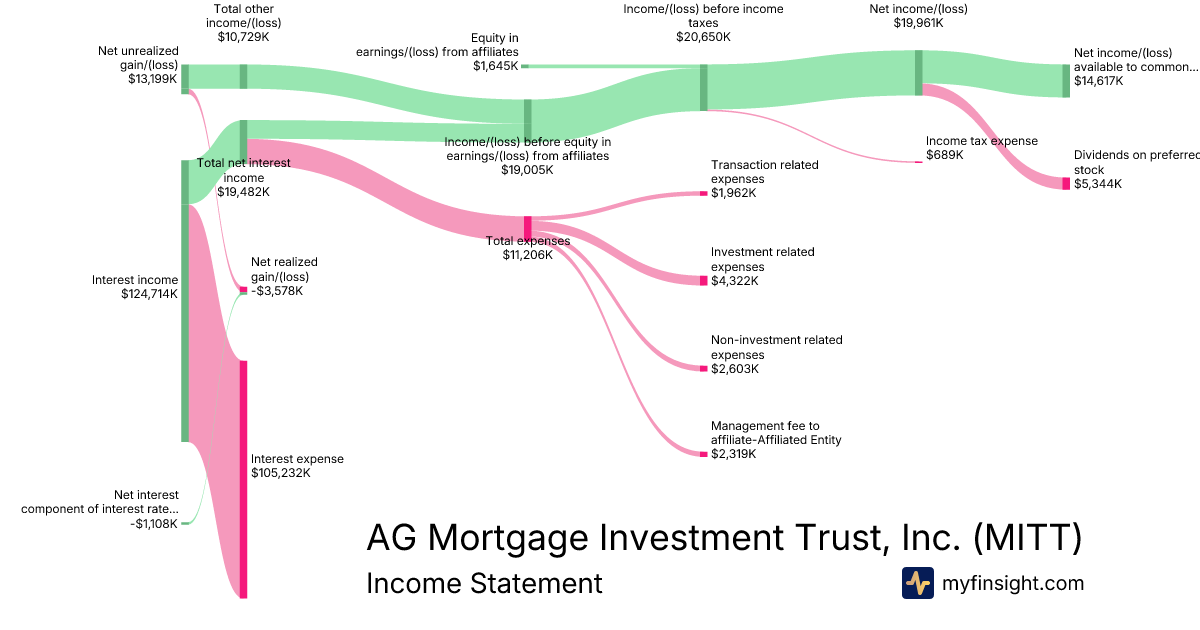 For the quarter ending 2025-09-30, MITT made $149,656K in revenue. $14,617K in net income. Net profit margin of 9.77%.