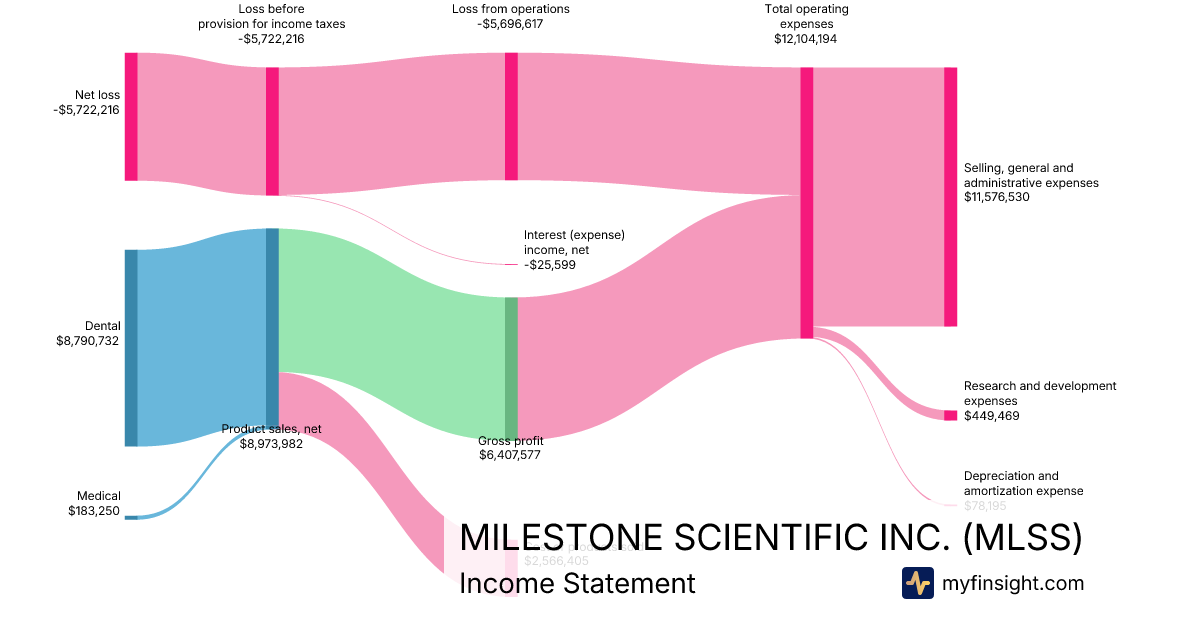 For the year ending 2025-12-31, MLSS made $8,973,982 in revenue. -$5,722,216 in net income. Net profit margin of -63.76%.