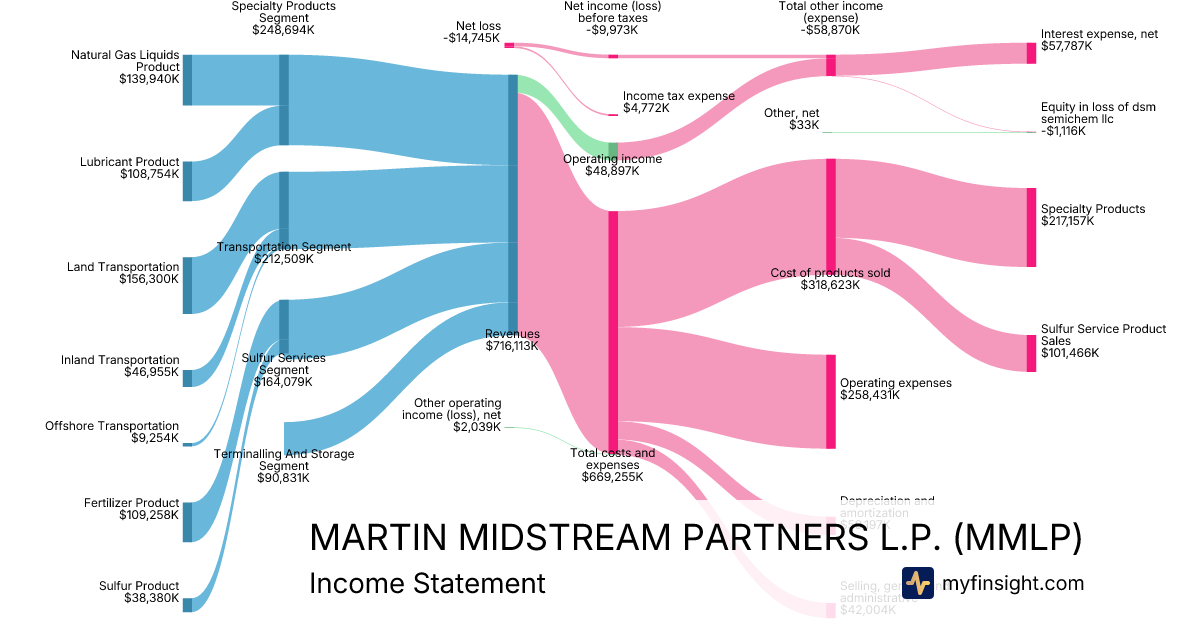 For the year ending 2025-12-31, MMLP made $716,113K in revenue. -$14,745K in net income. Net profit margin of -2.06%.