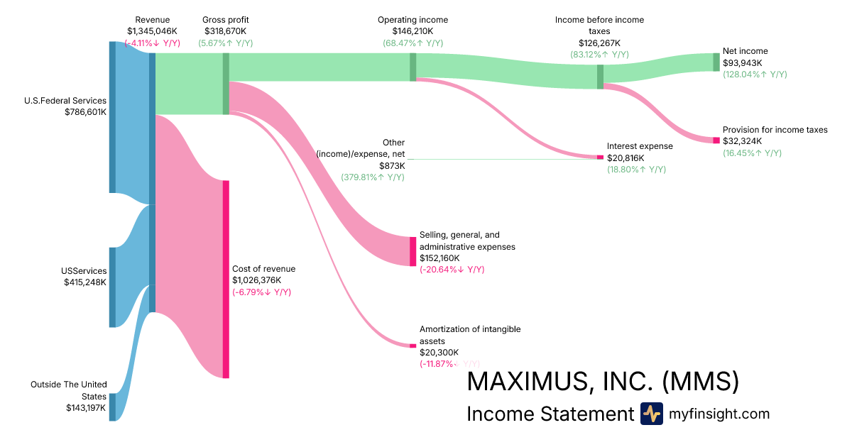 For the quarter ending 2025-12-31, MMS made $1,345,046K in revenue. $93,943K in net income. Net profit margin of 6.98%.