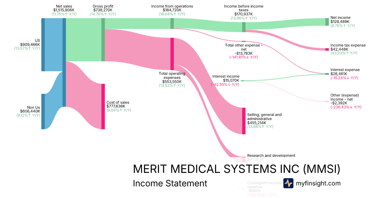 For the year ending 2025-12-31, MMSI made $1,515,906K in revenue. $128,489K in net income. Net profit margin of 8.48%.