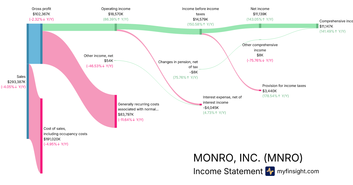 For the quarter ending 2025-12-27, MNRO made $293,387K in revenue. $11,147K in net income. Net profit margin of 3.80%.