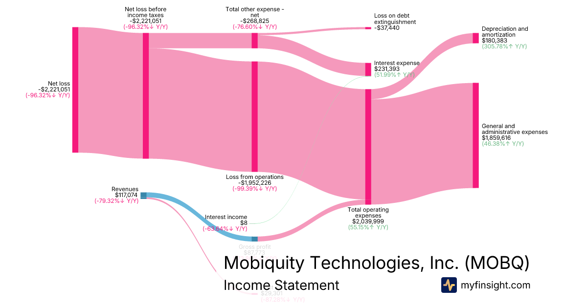 For the quarter ending 2025-09-30, MOBQ made $117,074 in revenue. -$2,221,051 in net income. Net profit margin of -1897.13%.