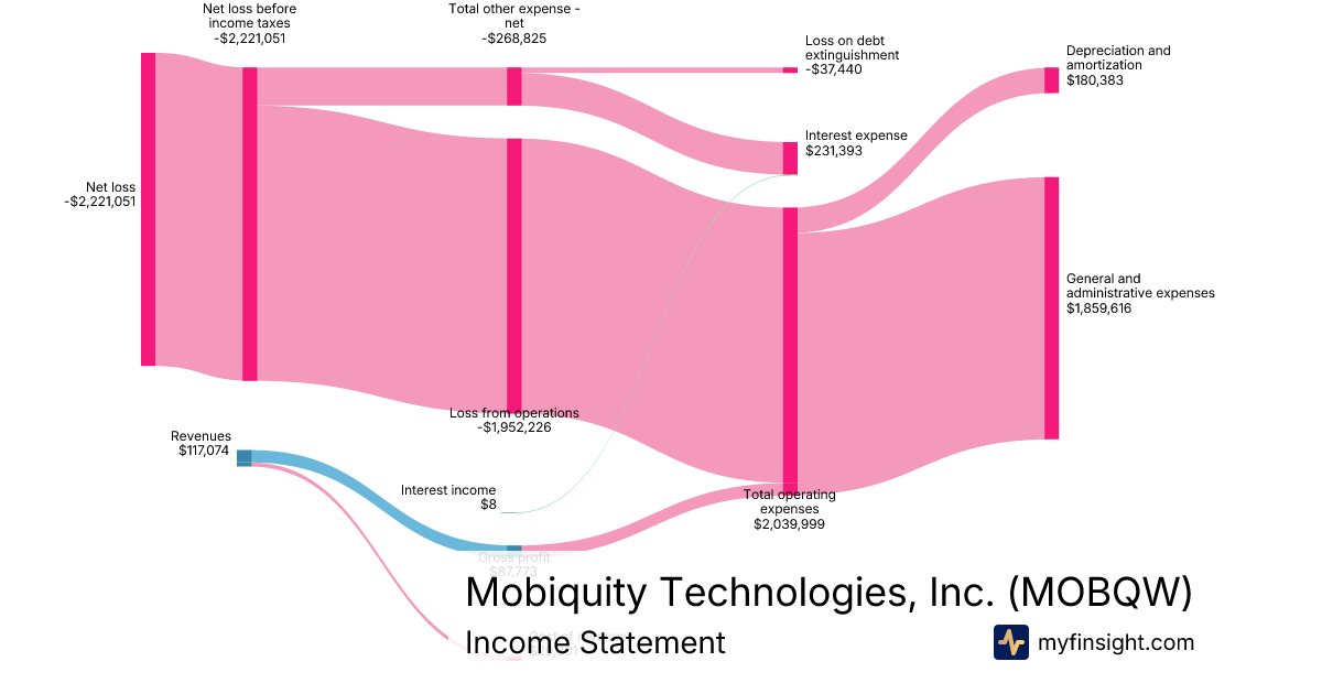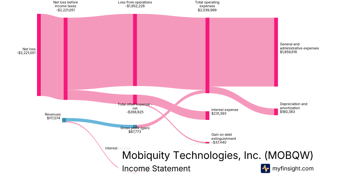 For the quarter ending 2025-09-30, MOBQW made $117,074 in revenue. -$2,221,051 in net income. Net profit margin of -1897.13%.