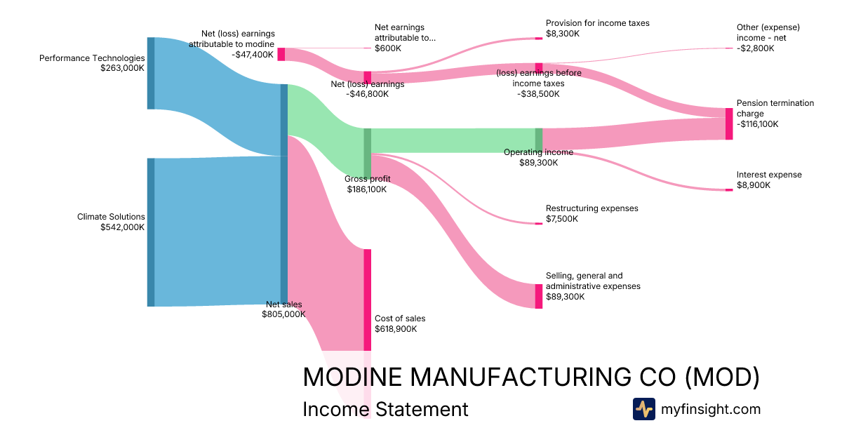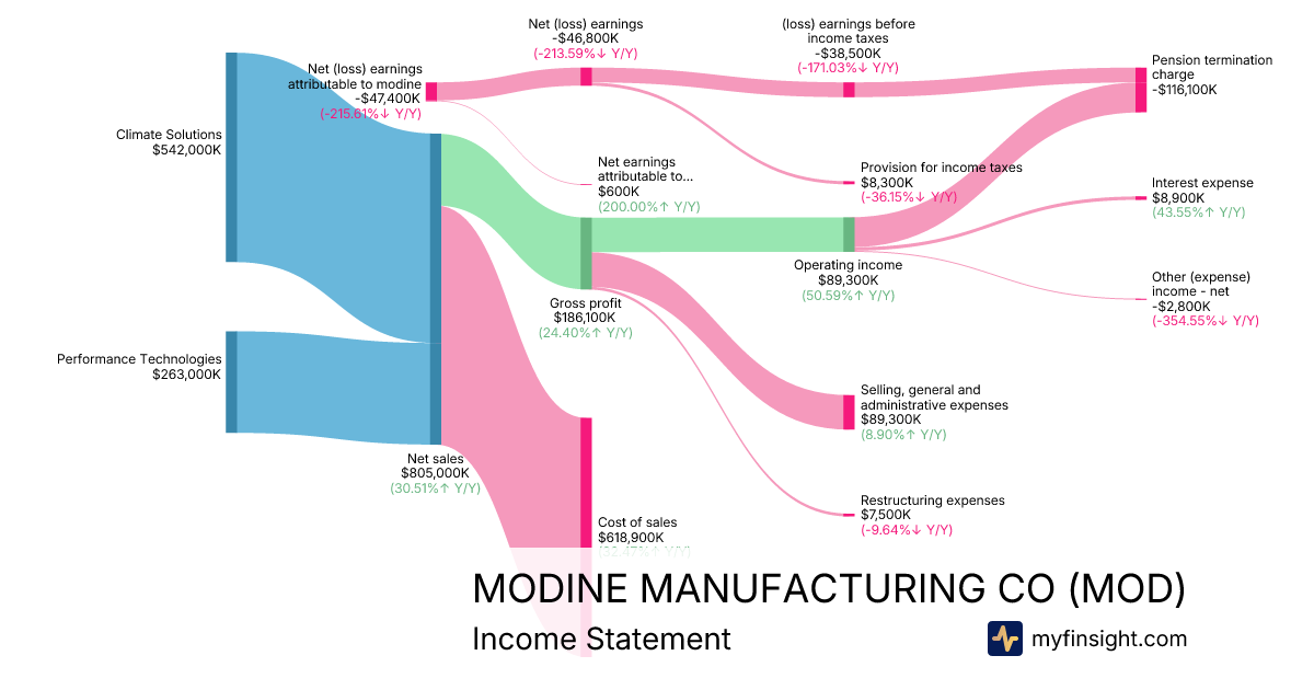 For the quarter ending 2025-12-31, MOD made $805,000K in revenue. -$47,400K in net income. Net profit margin of -5.89%.