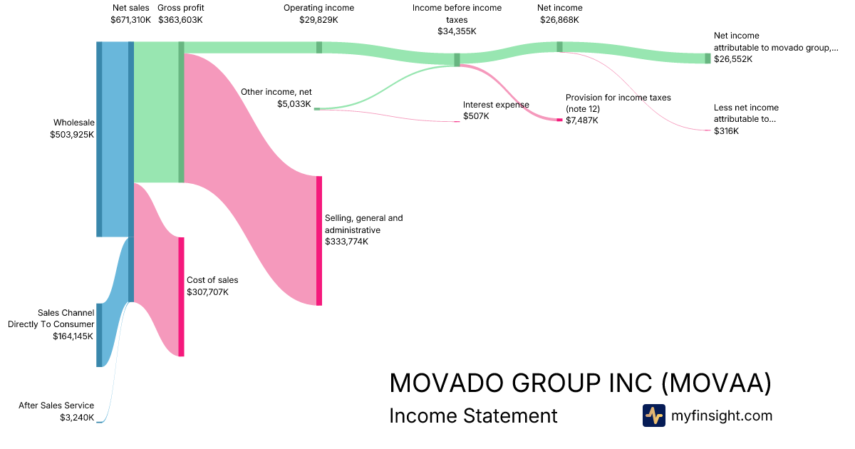 For the year ending 2026-01-31, MOVAA made $671,310K in revenue. $26,552K in net income. Net profit margin of 3.96%.