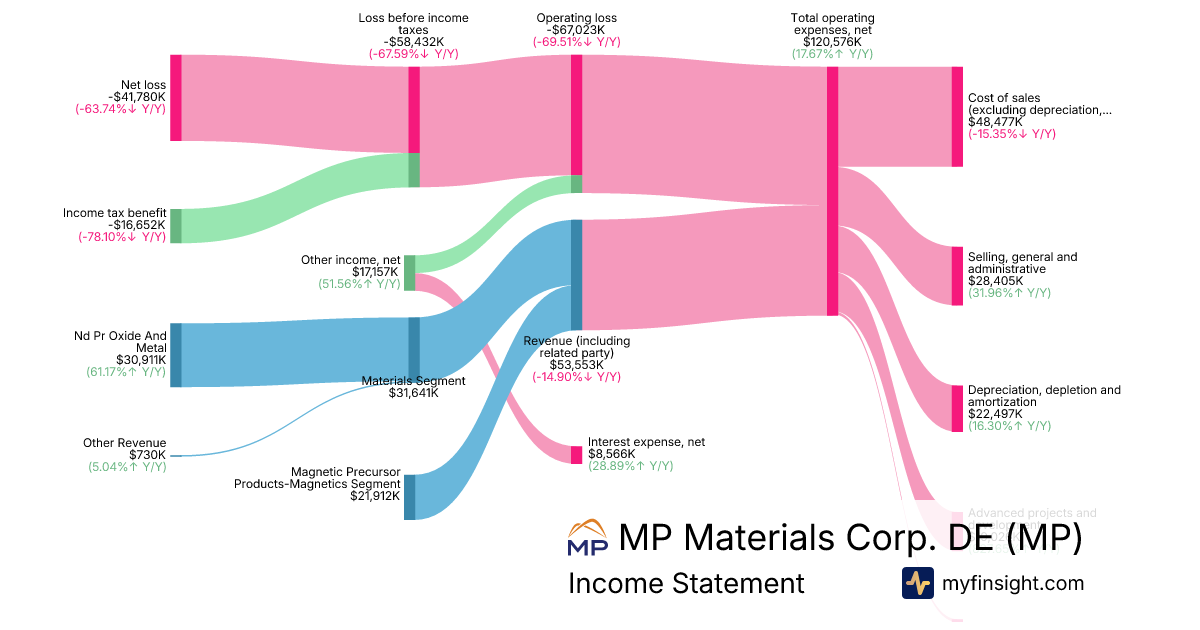 For the quarter ending 2025-09-30, MP made $53,553K in revenue. -$41,780K in net income. Net profit margin of -78.02%.