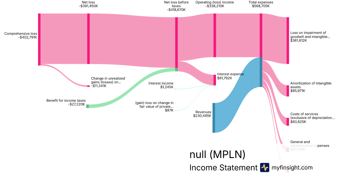 For the quarter ending 2024-09-30, MPLN made $230,495K in revenue. -$402,791K in net income. Net profit margin of -174.75%.