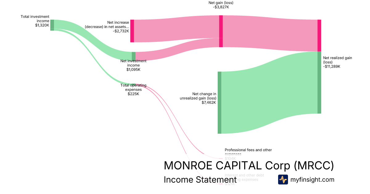 For the quarter ending 2025-09-30, MRCC made $9,007K in revenue. -$2,732K in net income. Net profit margin of -30.33%.