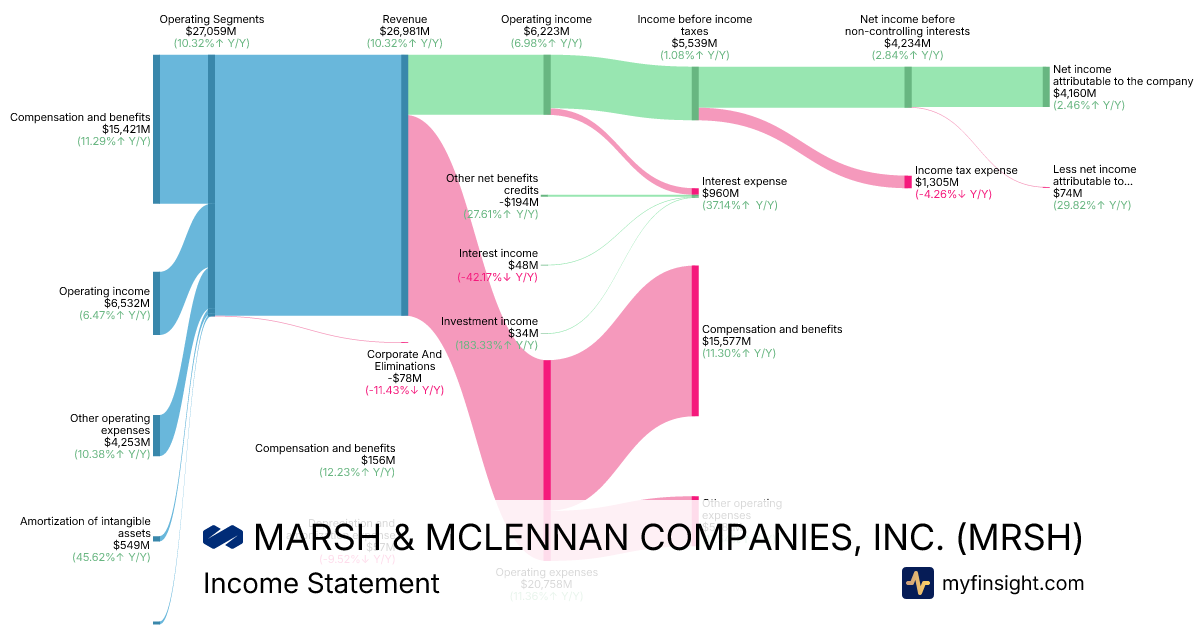 For the year ending 2025-12-31, MRSH made $26,981M in revenue. $4,160M in net income. Net profit margin of 15.42%.