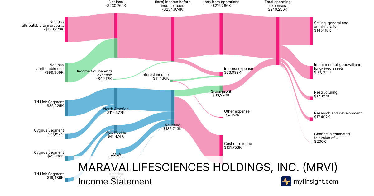 For the year ending 2025-12-31, MRVI made $185,743K in revenue. -$130,773K in net income. Net profit margin of -70.41%.