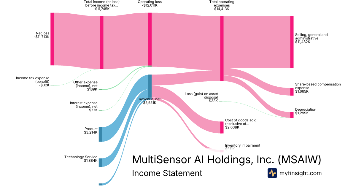 For the year ending 2025-12-31, MSAIW made $5,551K in revenue. -$11,713K in net income. Net profit margin of -211.01%.