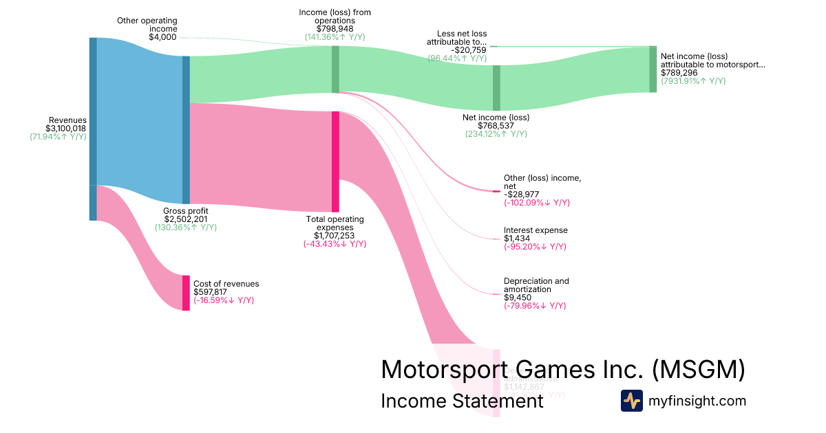 | Net income (loss) attributable to motorsport games inc | 789,296 | 4,258,400 | 9,827 | 2,376,306 |