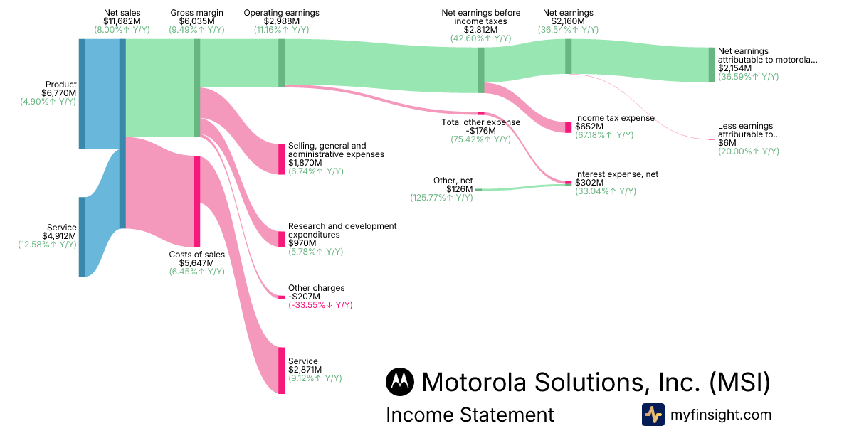 For the year ending 2025-12-31, MSI made $11,682M in revenue. $2,154M in net income. Net profit margin of 18.44%.