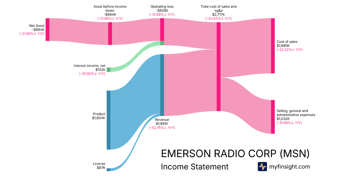 For the quarter ending 2025-12-31, MSN made $1,891K in revenue. -$694K in net income. Net profit margin of -36.70%.