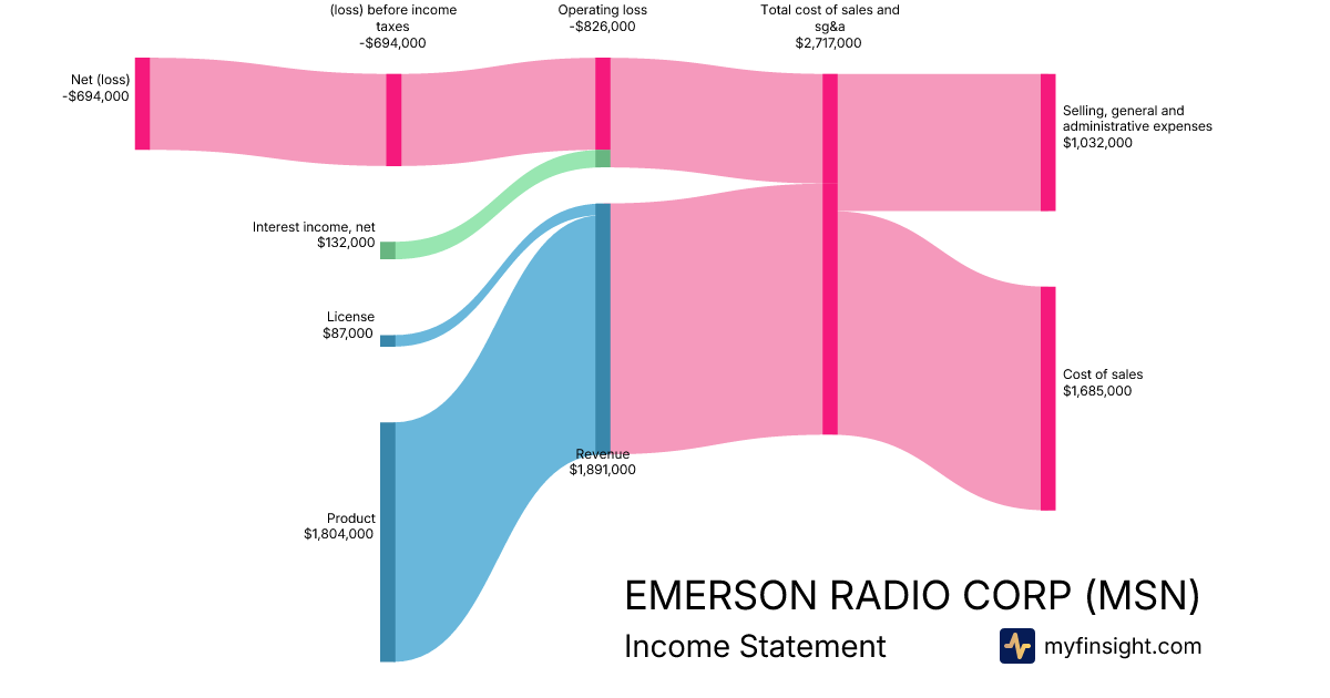 For the quarter ending 2025-12-31, MSN made $1,891,000 in revenue. -$694,000 in net income. Net profit margin of -36.70%.