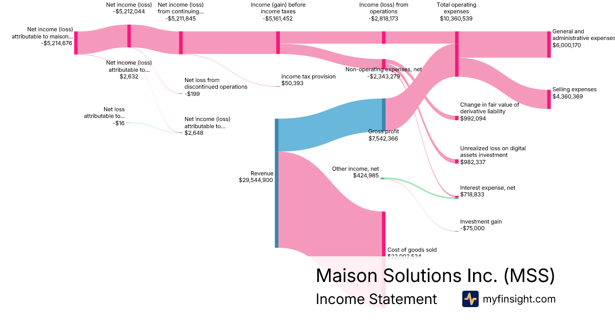 For the quarter ending 2026-01-31, MSS made $29,544,900 in revenue. -$5,214,676 in net income. Net profit margin of -17.65%.