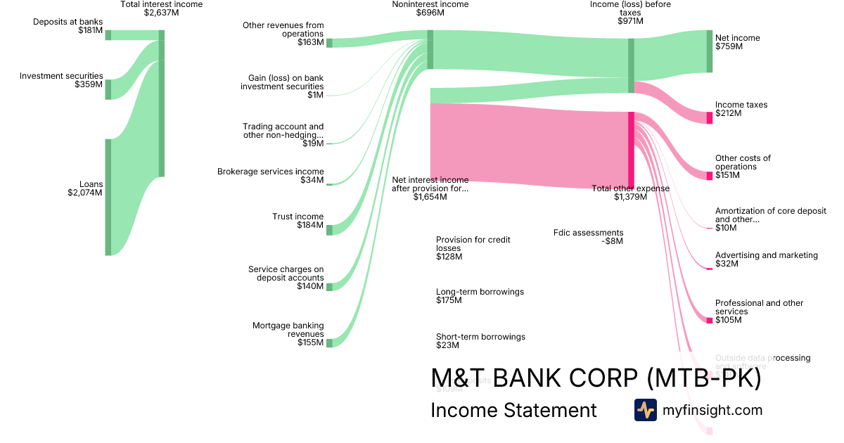 For the year ending 2025-12-31, MTB-PK made $22,259,000K in revenue. $2,851,000K in net income. Net profit margin of 12.81%.