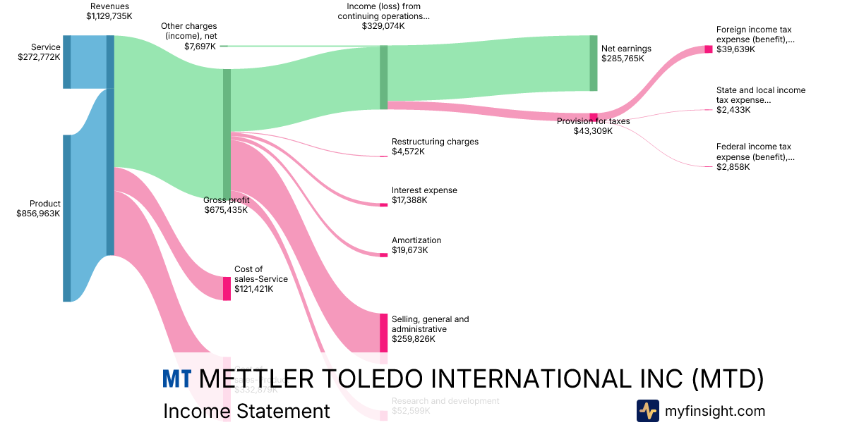 For the year ending 2025-12-31, MTD made $4,026,399K in revenue. $869,193K in net income. Net profit margin of 21.59%.