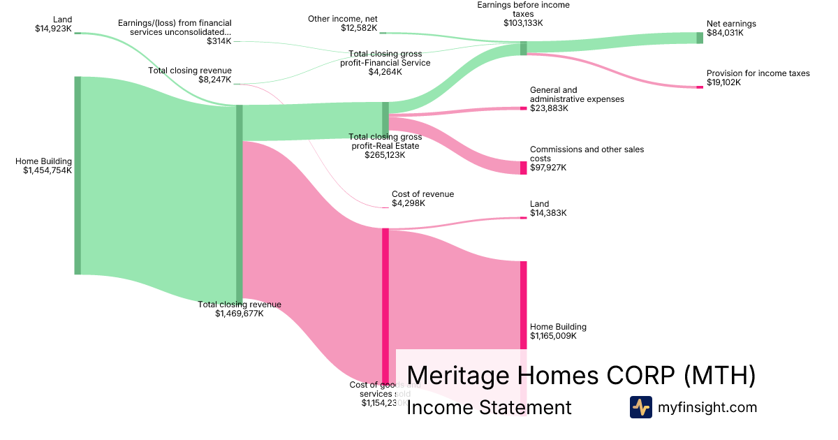 For the year ending 2025-12-31, MTH made $10,591,191K in revenue. $453,013K in net income. Net profit margin of 4.28%.