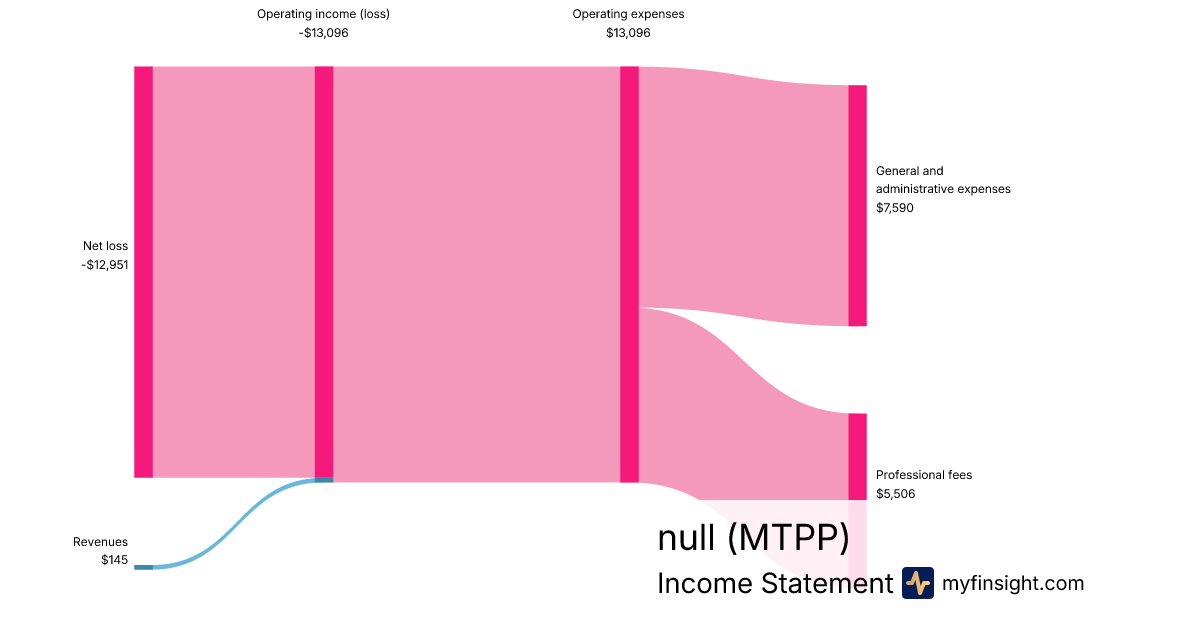 For the quarter ending 2024-09-30, MTPP made $145 in revenue. -$12,951 in net income. Net profit margin of -8931.72%.