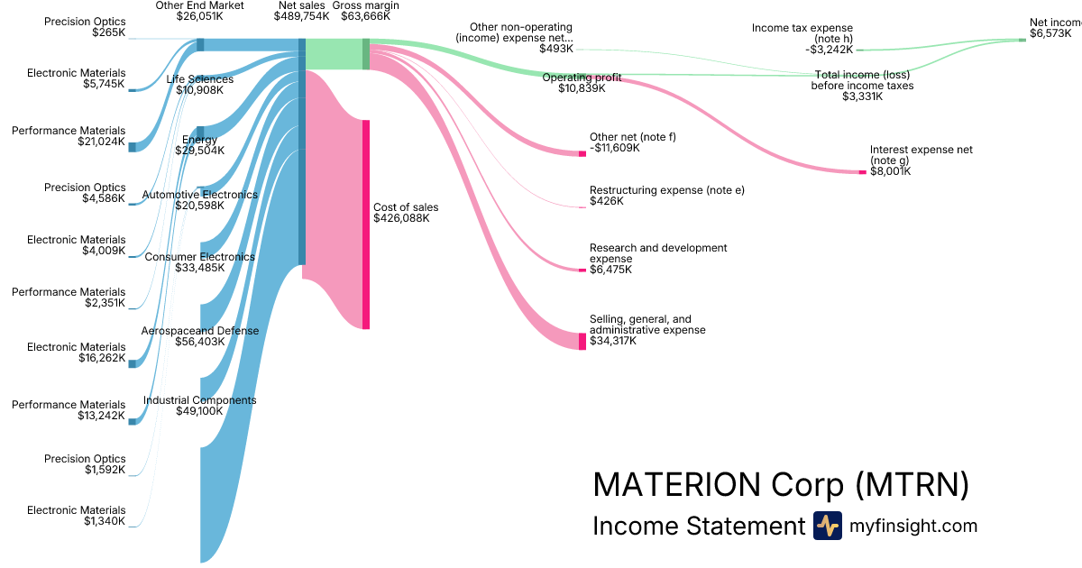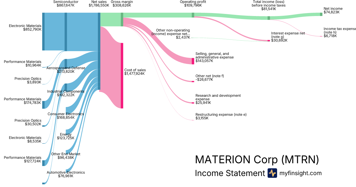 For the year ending 2025-12-31, MTRN made $1,786,550K in revenue. $74,823K in net income. Net profit margin of 4.19%.