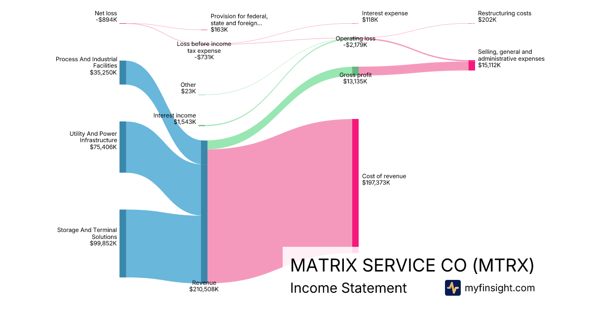 For the quarter ending 2025-12-31, MTRX made $210,508K in revenue. -$894K in net income. Net profit margin of -0.42%.