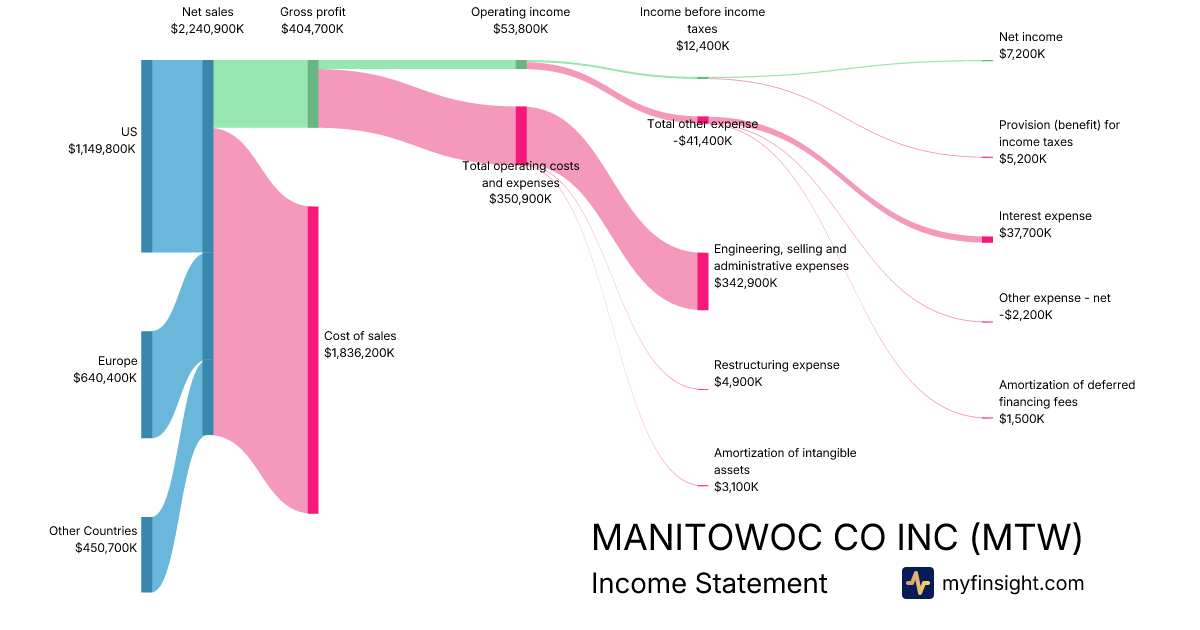 For the year ending 2025-12-31, MTW made $2,240,900K in revenue. $7,200K in net income. Net profit margin of 0.32%.