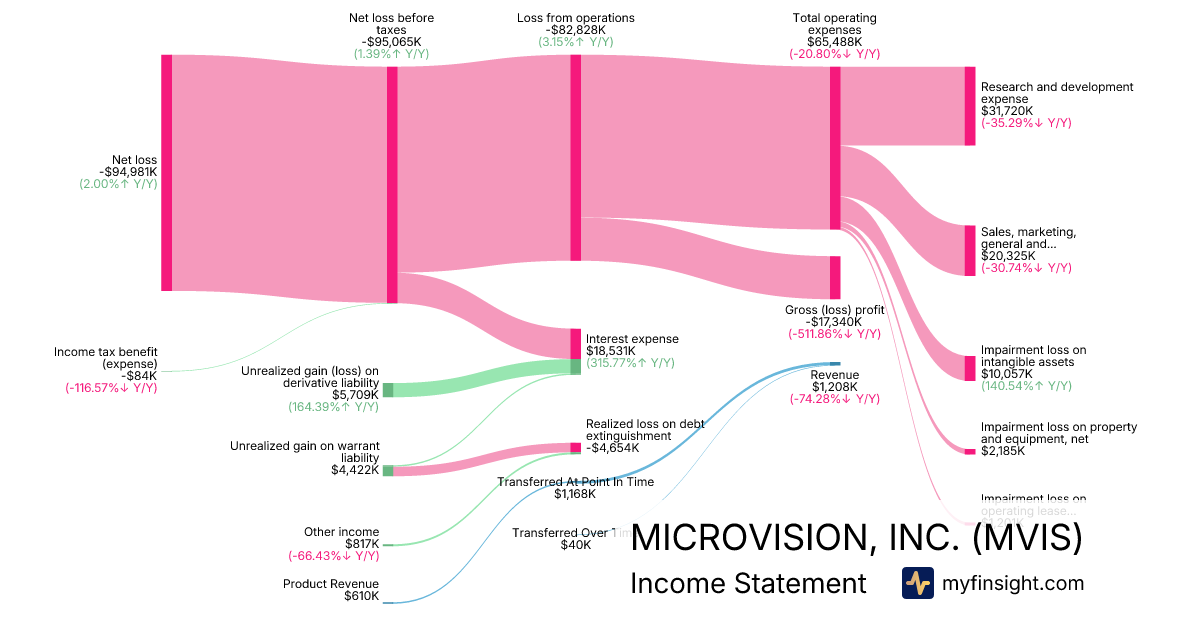 For the year ending 2025-12-31, MVIS made $1,208K in revenue. -$94,981K in net income. Net profit margin of -7862.67%.