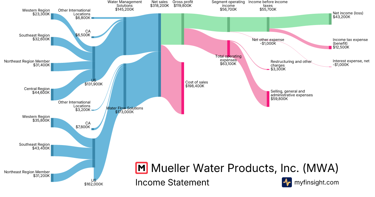 For the quarter ending 2025-12-31, MWA made $318,200K in revenue. $43,200K in net income. Net profit margin of 13.58%.