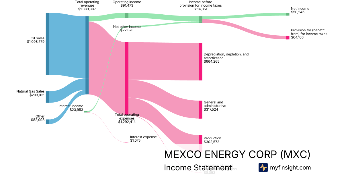 For the quarter ending 2025-12-31, MXC made $1,383,887 in revenue. $50,245 in net income. Net profit margin of 3.63%.
