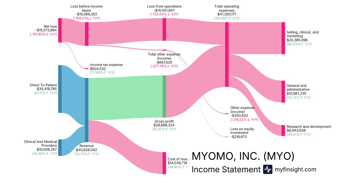 For the year ending 2025-12-31, MYO made $40,928,042 in revenue. -$15,573,884 in net income. Net profit margin of -38.05%.